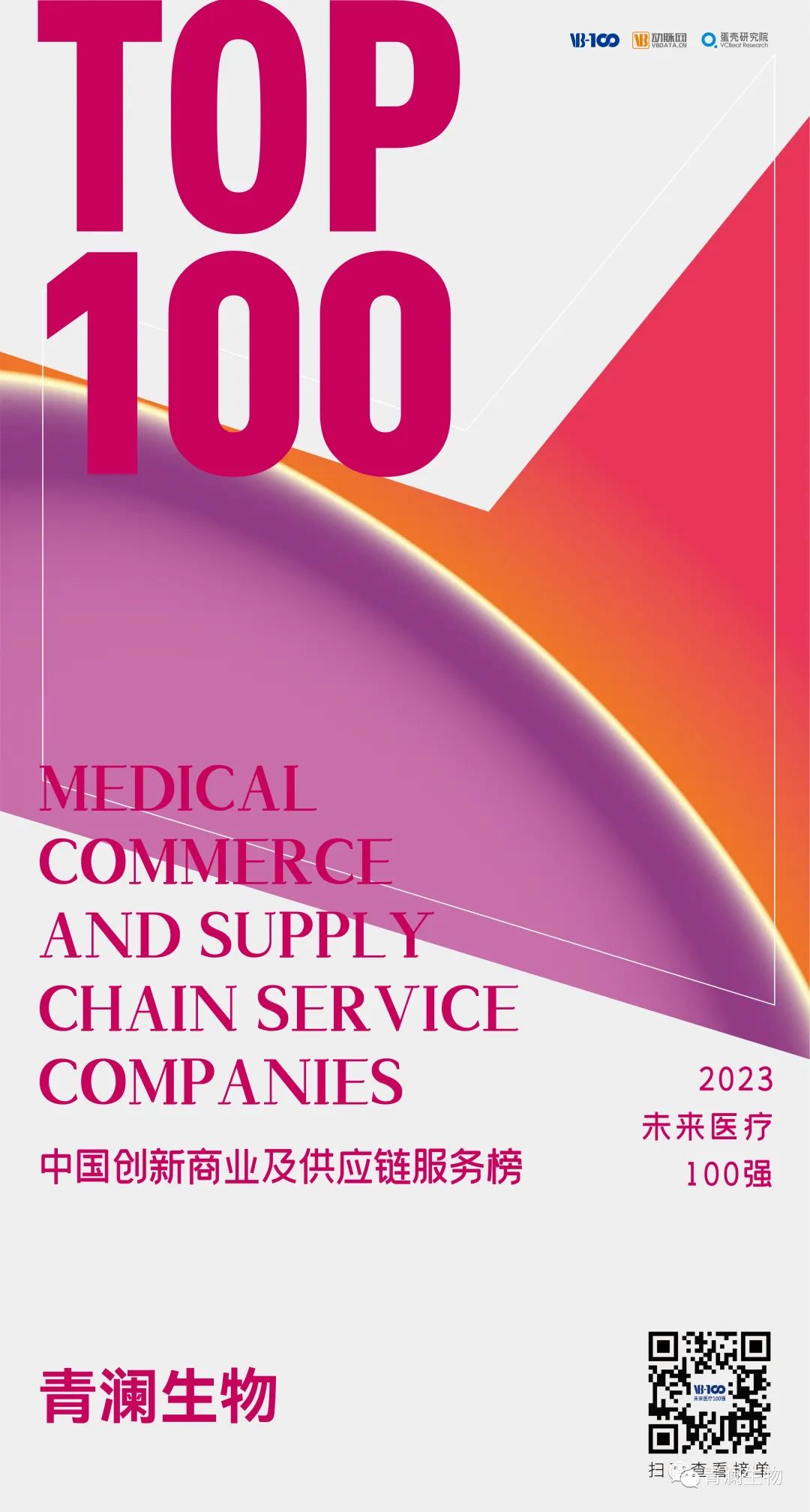 創(chuàng)立于2015年的未來醫(yī)療100強榜單是由VB100、動脈網(wǎng)、蛋殼研究院推出的國內(nèi)第一個針對非上市企業(yè)的創(chuàng)新醫(yī)療領(lǐng)域榜單,旨在遴選真正代表未來醫(yī)療的中國創(chuàng)新醫(yī)療者,發(fā)現(xiàn)我國未來醫(yī)療產(chǎn)業(yè)的核心力量,推動健康醫(yī)療產(chǎn)業(yè)的創(chuàng)新變革進程。