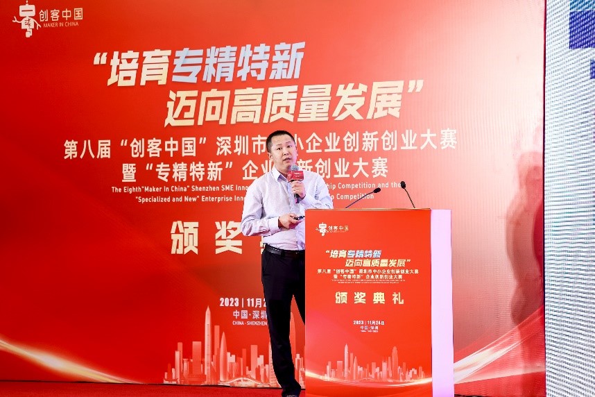 2023年11月24日,由深圳市工業(yè)和信息化局、深圳市中小企業(yè)服務(wù)局、深圳市人才工作局等單位聯(lián)合主辦的第八屆“創(chuàng)客中國”深圳市中小企業(yè)創(chuàng)新創(chuàng)業(yè)大賽暨“專精特新”企業(yè)創(chuàng)新創(chuàng)業(yè)大賽頒獎典禮,在深圳市市民中心成功舉行。本次大賽以專精特新企業(yè)培育為核心,緊密結(jié)合深圳“20+8”產(chǎn)業(yè)集群的技術(shù)主攻方向,旨在探討如何提升企業(yè)的核心競爭力,實現(xiàn)高質(zhì)量發(fā)展。青瀾生物總經(jīng)理江林受邀參加了此次頒獎典禮,并在“夢想與探索”中小企業(yè)專精特新發(fā)展道路研討會環(huán)節(jié)上,以“藥物遞送方式的顛覆者”為題發(fā)表了講話。