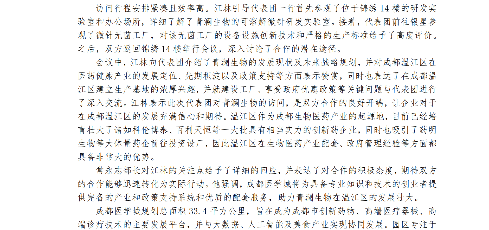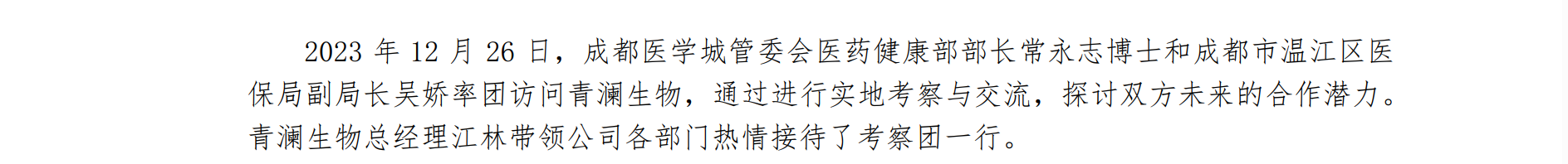 成都醫(yī)學(xué)城管委會(huì)和溫江區(qū)醫(yī)保局領(lǐng)導(dǎo)訪問(wèn)青瀾生物,探討深度合作前景