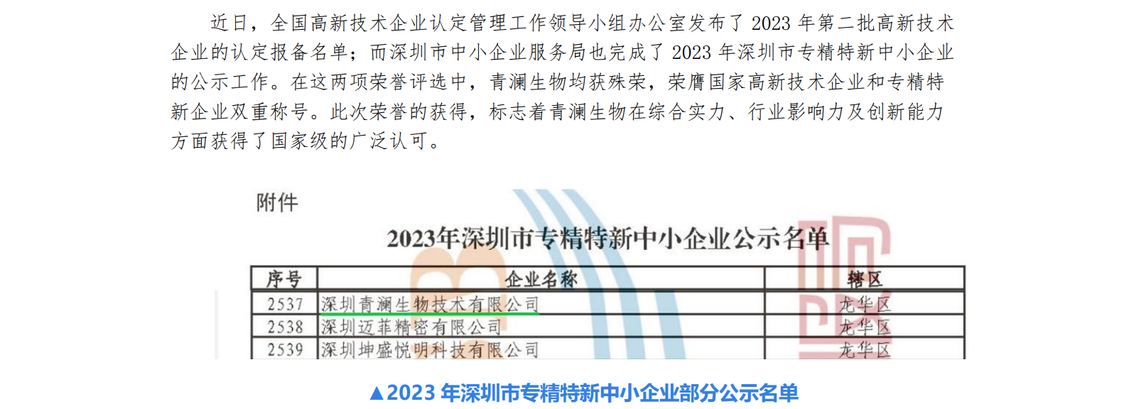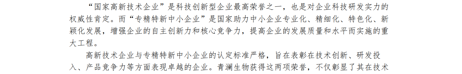 喜訊!青瀾生物榮膺國(guó)家高新技術(shù)企業(yè)與專精特新 中小企業(yè)雙重榮譽(yù)